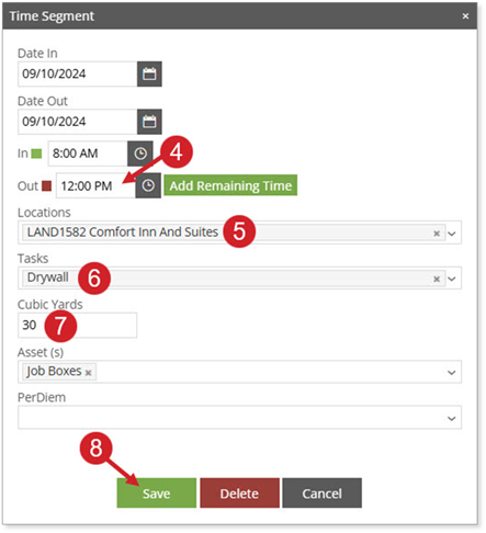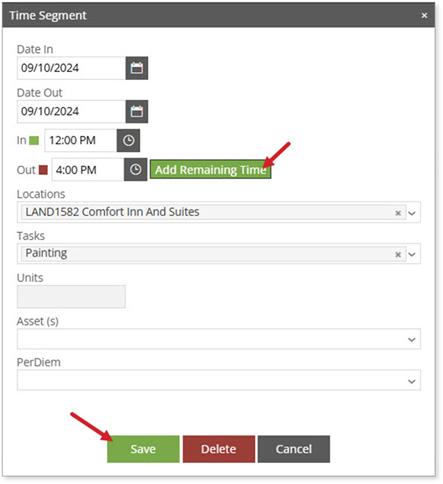 segment of the day, select the [Add Remaining Time] button to add the