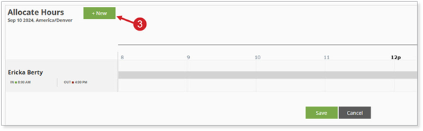 [+New] button to begin allocating time for the selected record.