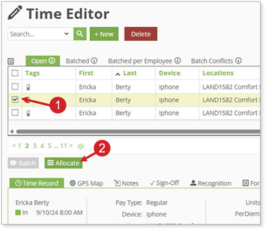1. Select the Time Record to allocate.
