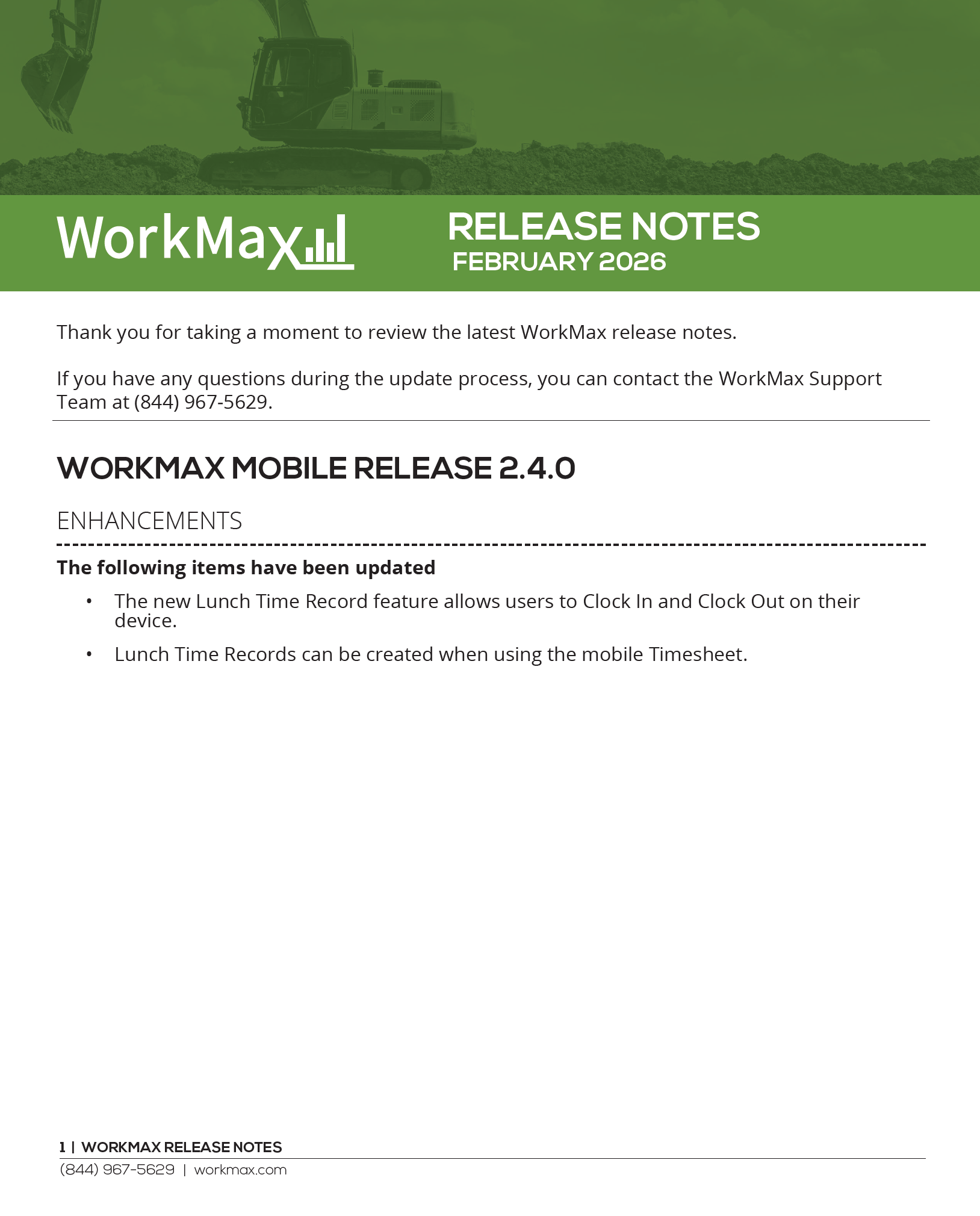 Thank you for taking a moment to review the latest WorkMax release notes. If you have any questions during the update process, you can contact our WorkMax Support Team at (844) 967-5629. February 2025 WORKMAX MOBILE RELEASE 2.3.0 Note: This release ...