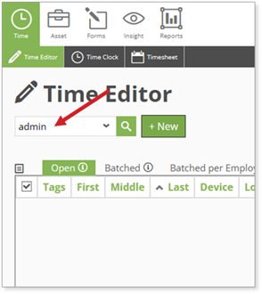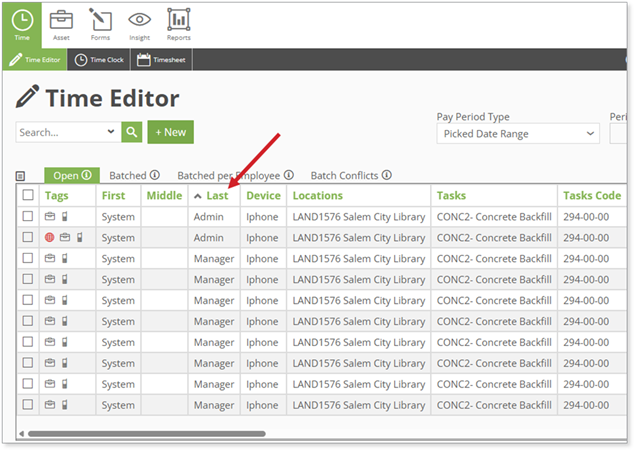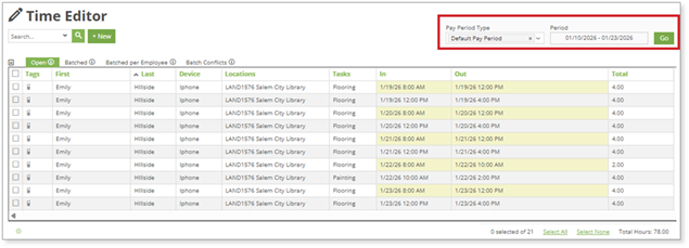 Editor grid displays Time Records from a selected date range. You can use the Pay