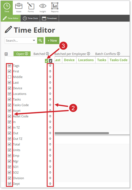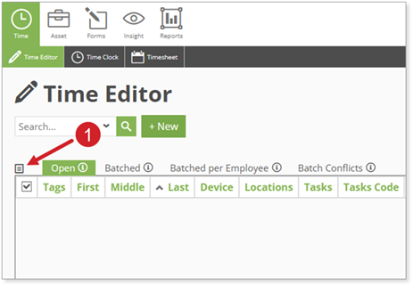 the menu icon in the upper-right corner of the Time Editor grid. This opens a