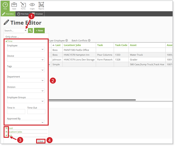 clear your selections, select [Clear] in the lower-right corner of the dropdown